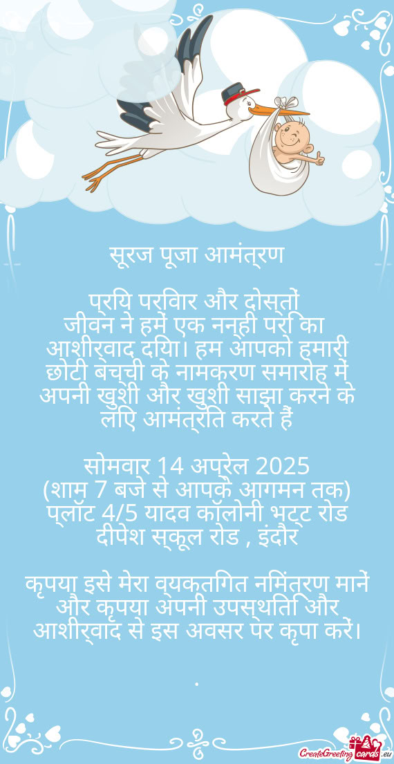 Please treat this as my personal invitation and kindly grace this occasion with your presence and blessing.