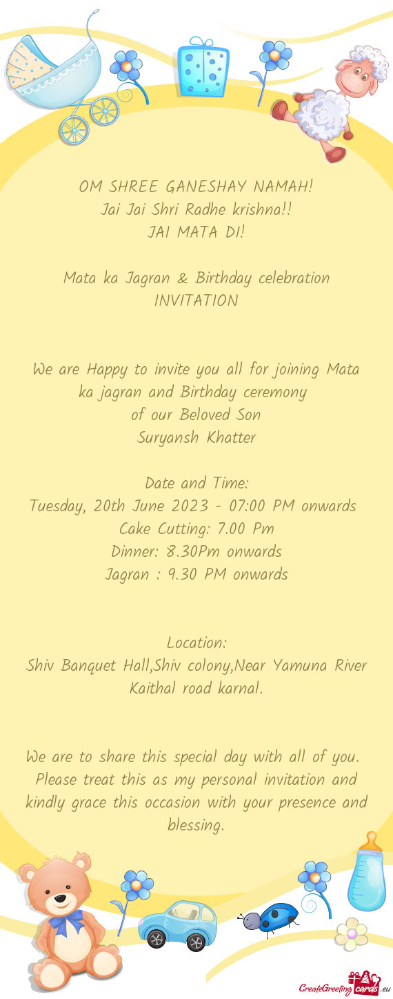 Please treat this as my personal invitation and kindly grace this occasion with your presence and blessing.