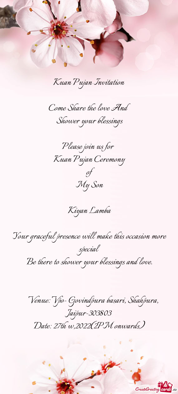 We request the pleasure of your company to celebrate the Tilak Ceremony of