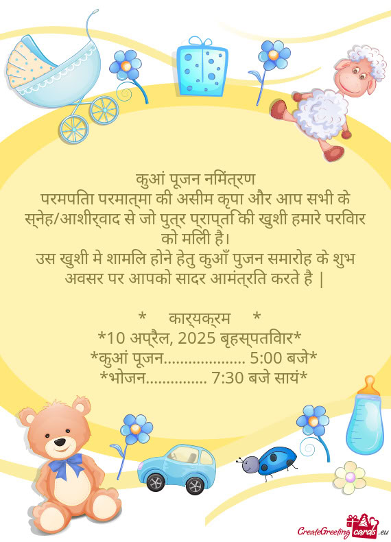 Life blessed us with a little prince. We invite you to share our happiness and joy at the suraj puja ceremony on Sunday, 22nd September 2024 at 2 PM followed by Snacks & High Tea.