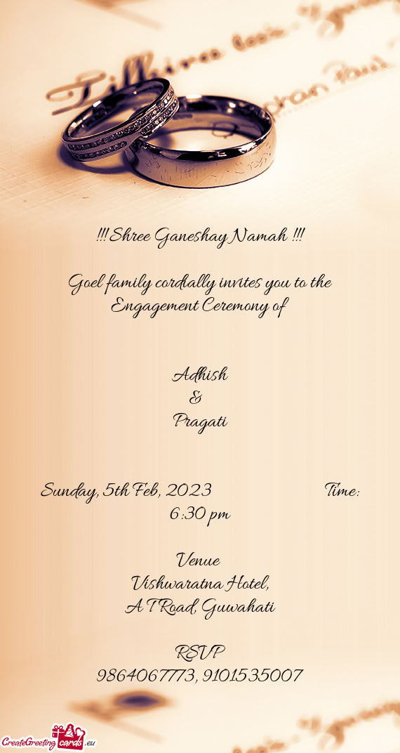 It gives me immense pleasure to invite you for my elder son wedding ceremony.