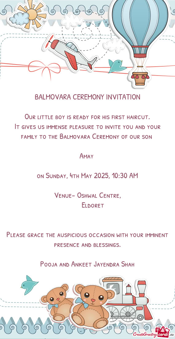 Hi family and friends We are Happy to invite you all for joining the Kua Pujan Ceremony of our Baby Boy