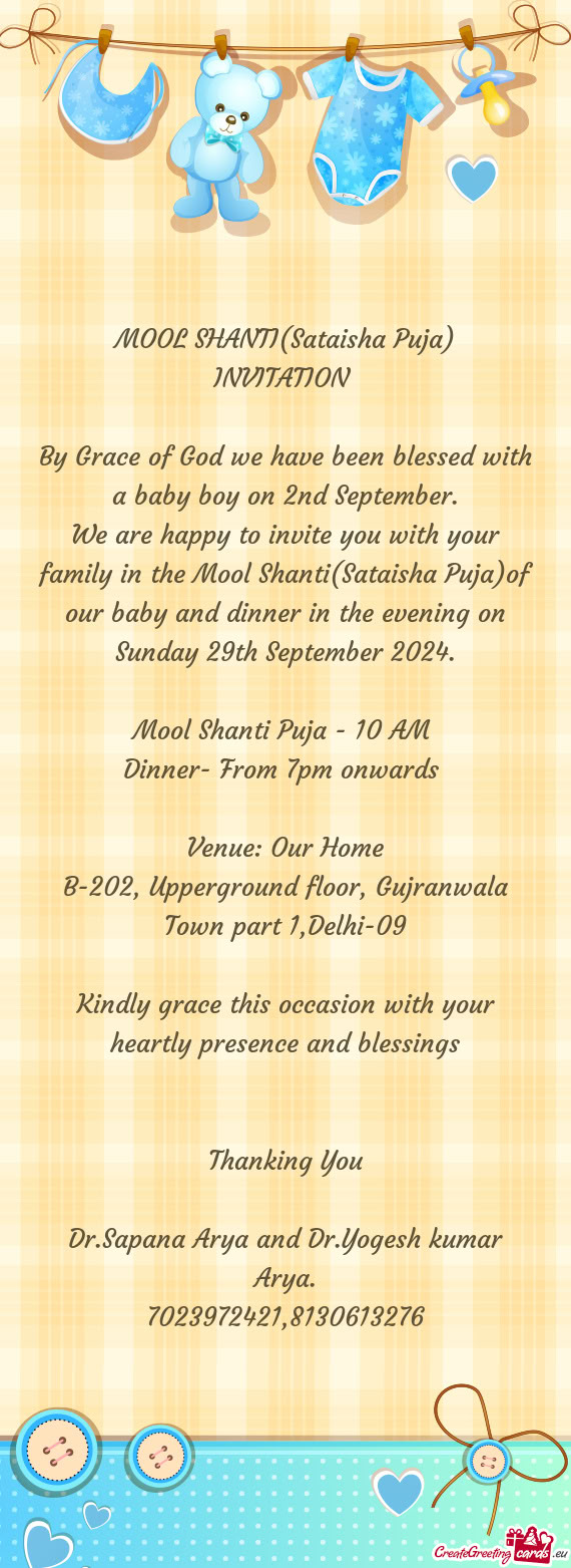 With immense pleasure we invite you and your family to our daughter's first head tonsure & ear piercing ceremony