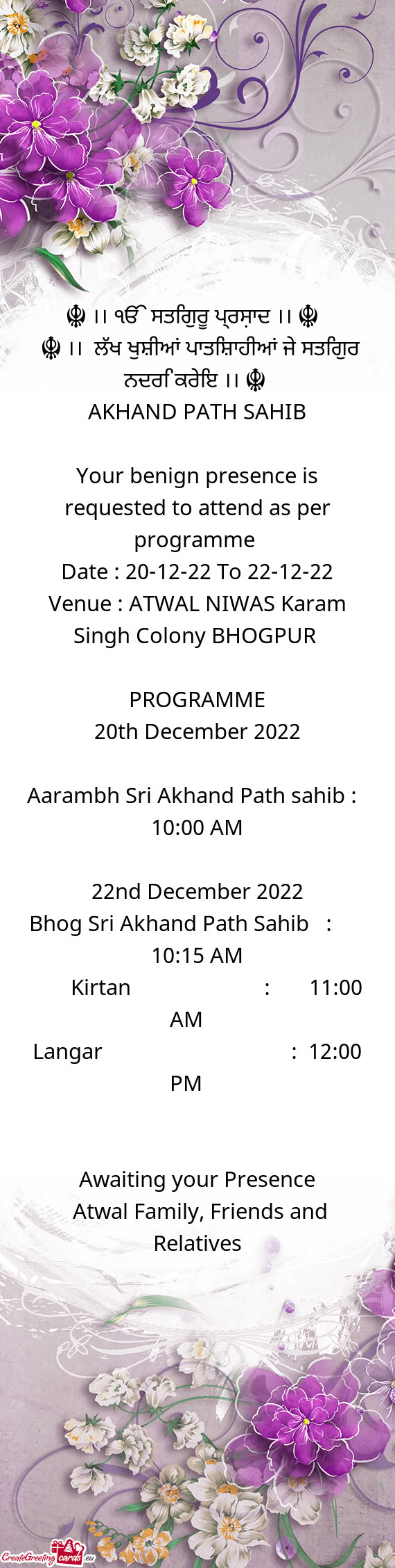 for all of us. Please treat this as our personal invitation and kindly grace this occasion with your presence and blessing.