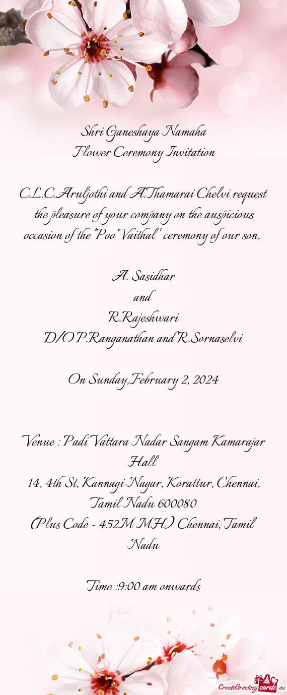 'Roka Ceremony Invitation'