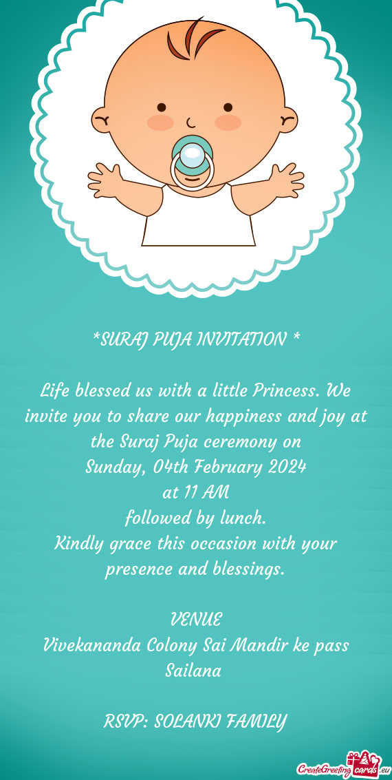 We are happy to invite you all for joining the "Munidevara Function" of our little Princess