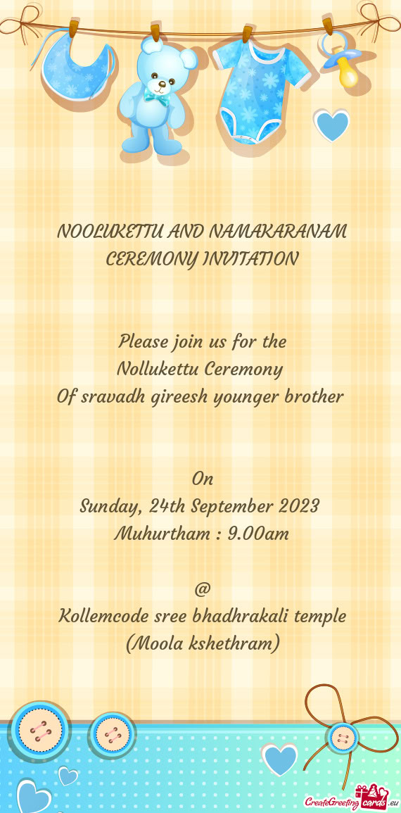 Please join us on the occasion to shower and shower your love & blessings to our little one.