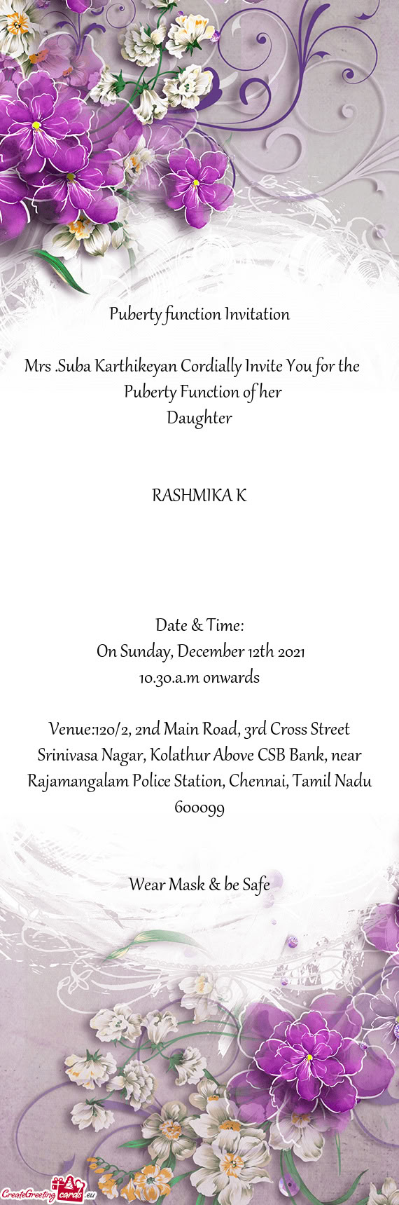 We cordially invite you for the half saree ceremony of our princess,