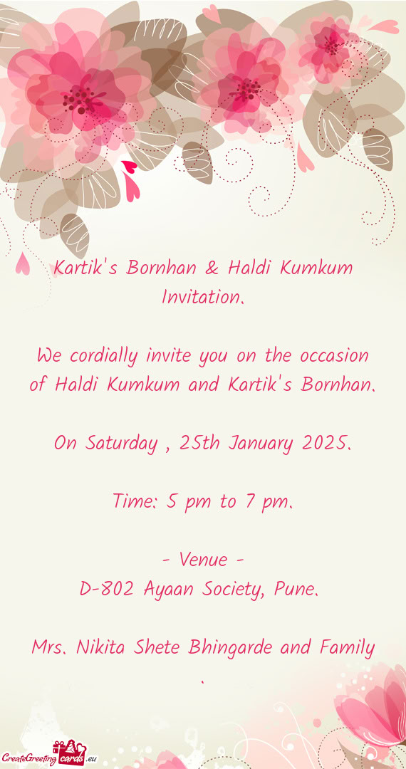 We cordially invite you on the occasion of Haldi Kumkum and swarnim's Bornahan