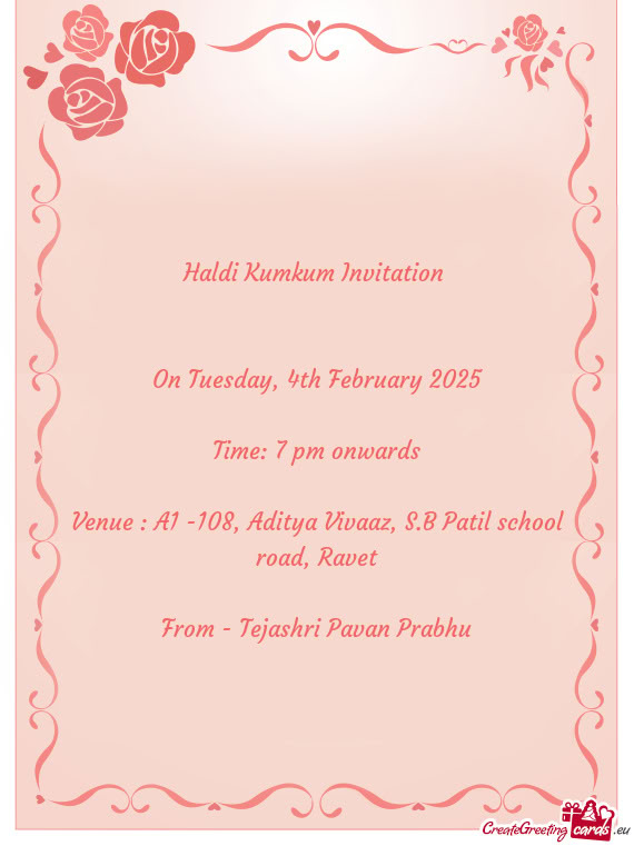 We cordially invite you to our home for Gol Dhana / Kumkum Pagla Ceremony of