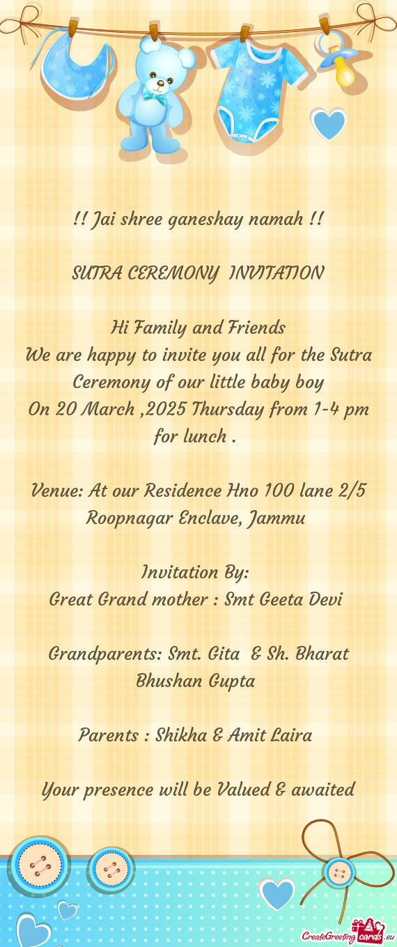 Please grace the auspicious occasion with your eminent presence & bless the child.