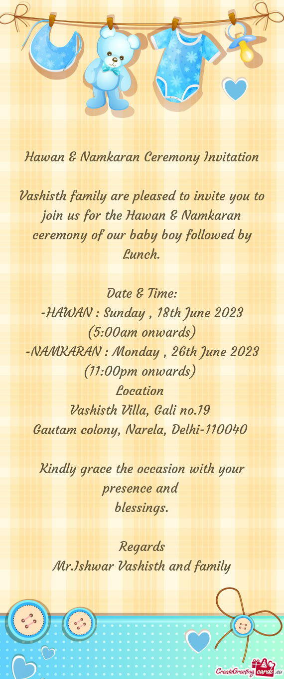 With Great Pleasure We Cordially invite you for the Naming Ceremony of Our 'Little Prince Charming'
