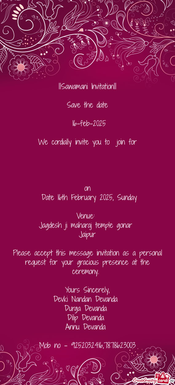 With immense pleasure we invite you and your family to our Grandsons head tonsure & ear piercing ceremony