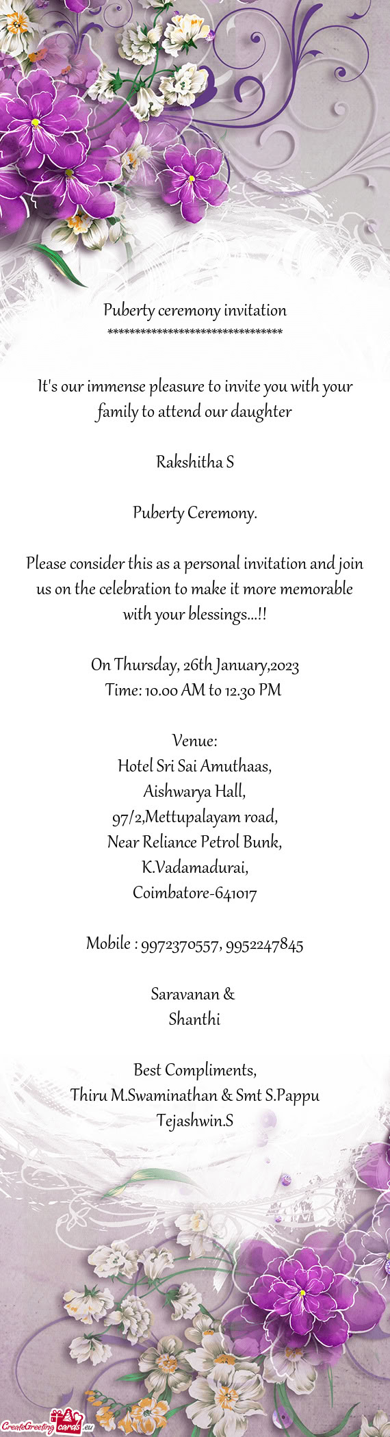 We will be extremely delighted with your presence and eagerly awaiting your company in this joyous occasion.